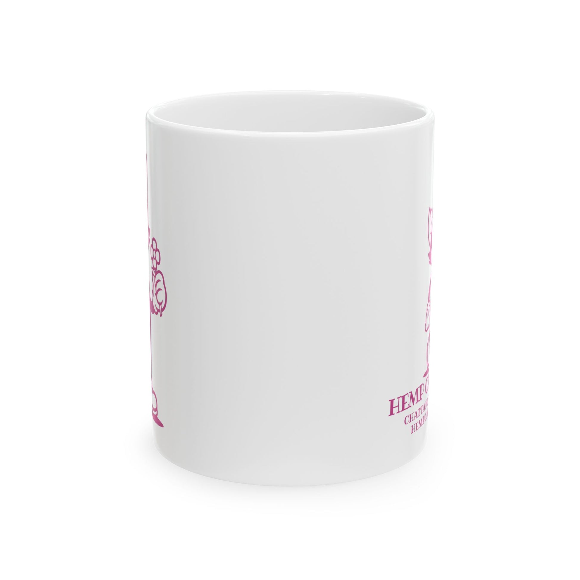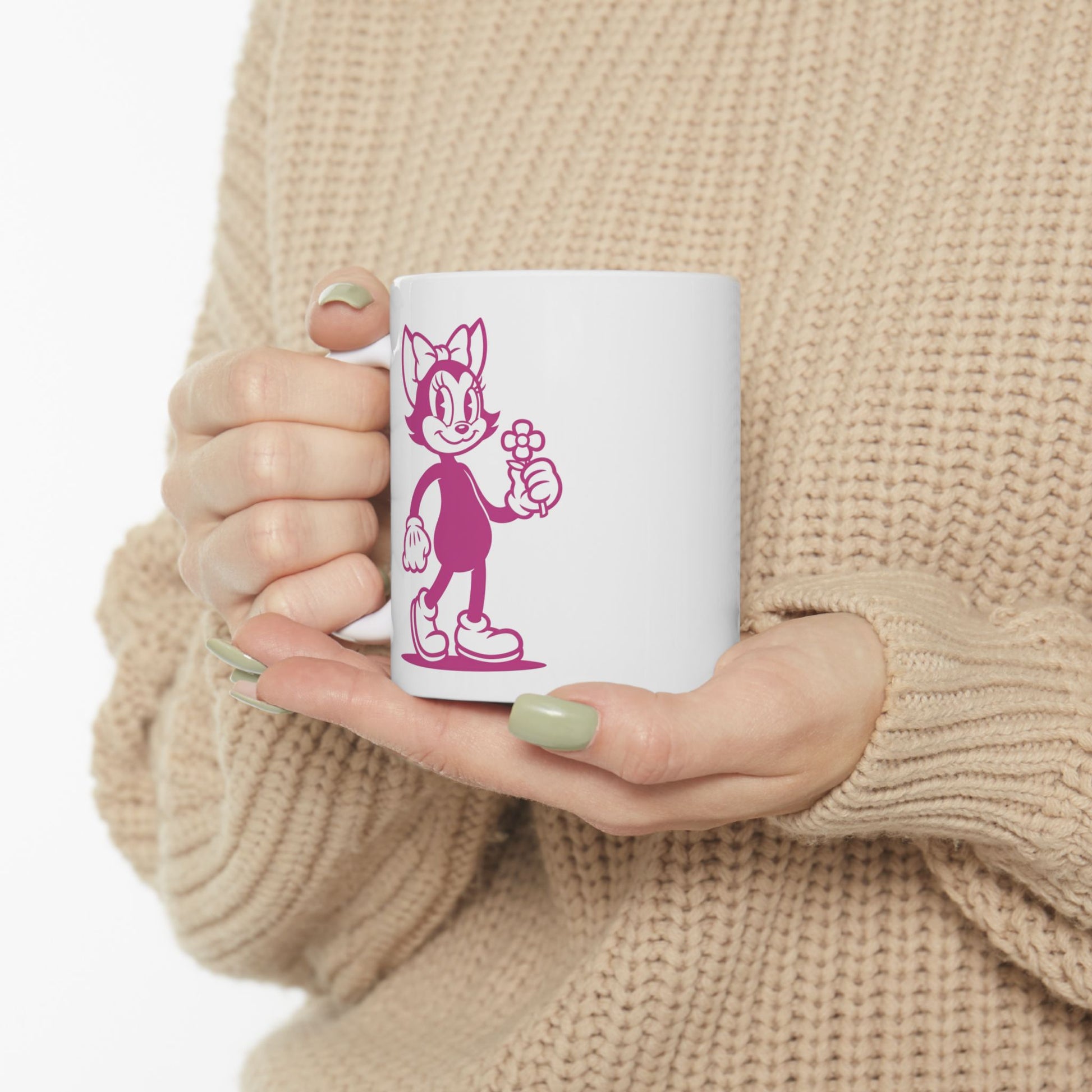 Charming Ceramic Coffee Mug for Women featuring Mrs Hemp Cat holding a flower. This mug is perfect for everyday use or as a gift for any occasion. The vibrant colors and glossy finish make it stand out, while the microwave and dishwasher-safe features add convenience to your daily routine. Suitable for those who appreciate cute and whimsical designs, this mug is ideal for birthdays, holidays, or just to add some cheer to your morning coffee.