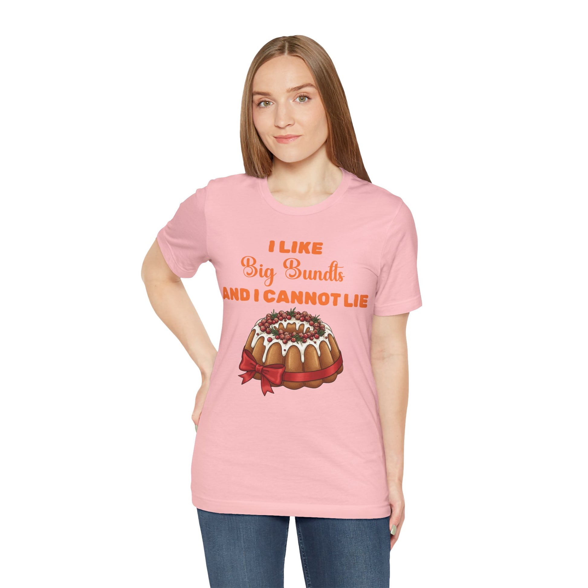This Thanksgiving T-Shirt is perfect for those who enjoy humor and baking. The design features a witty phrase 'I LIKE BIG BUNDTS' that adds a fun and playful vibe to any outfit. Ideal for celebrating Thanksgiving and baking enthusiasts.