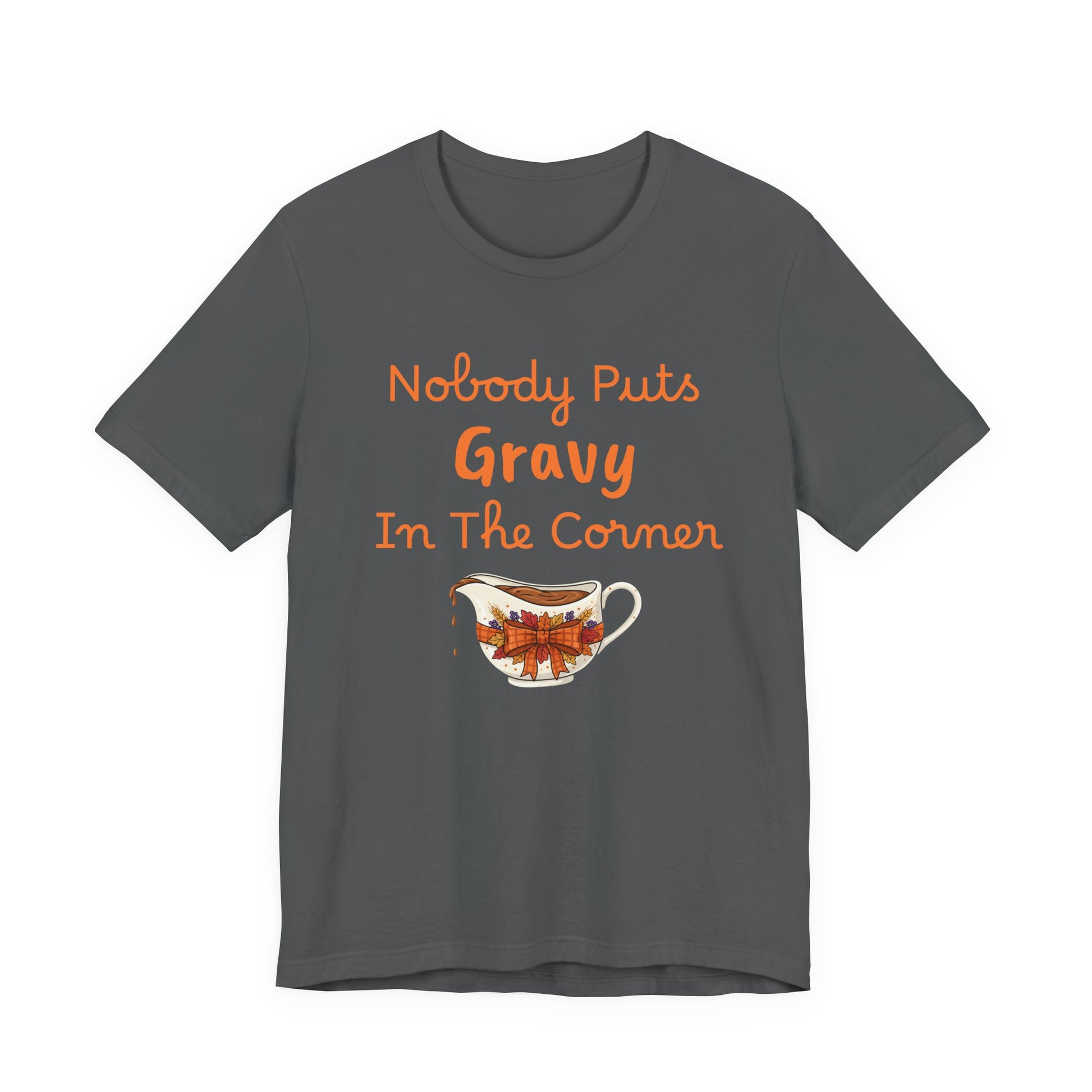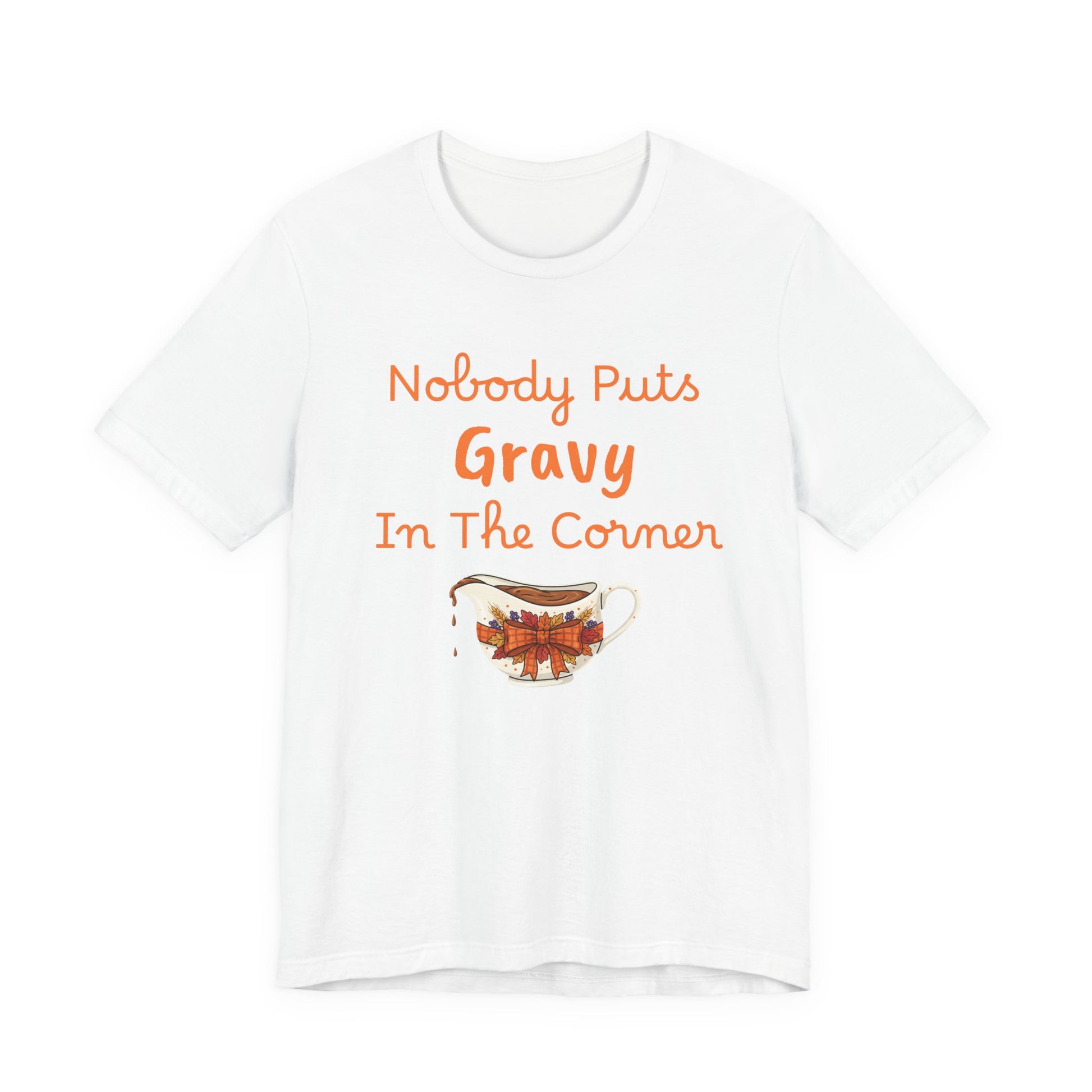 This Funny Thanksgiving Gravy Tee is perfect for adding a touch of humor to your holiday celebrations. Made with 100% Airlume combed and ring-spun cotton, this lightweight and breathable tee is ideal for both active and leisure wear. The retail fit and classic crew neckline make it suitable for casual and semi-formal settings. A great addition to your Thanksgiving wardrobe or as a fun gift for family and friends.