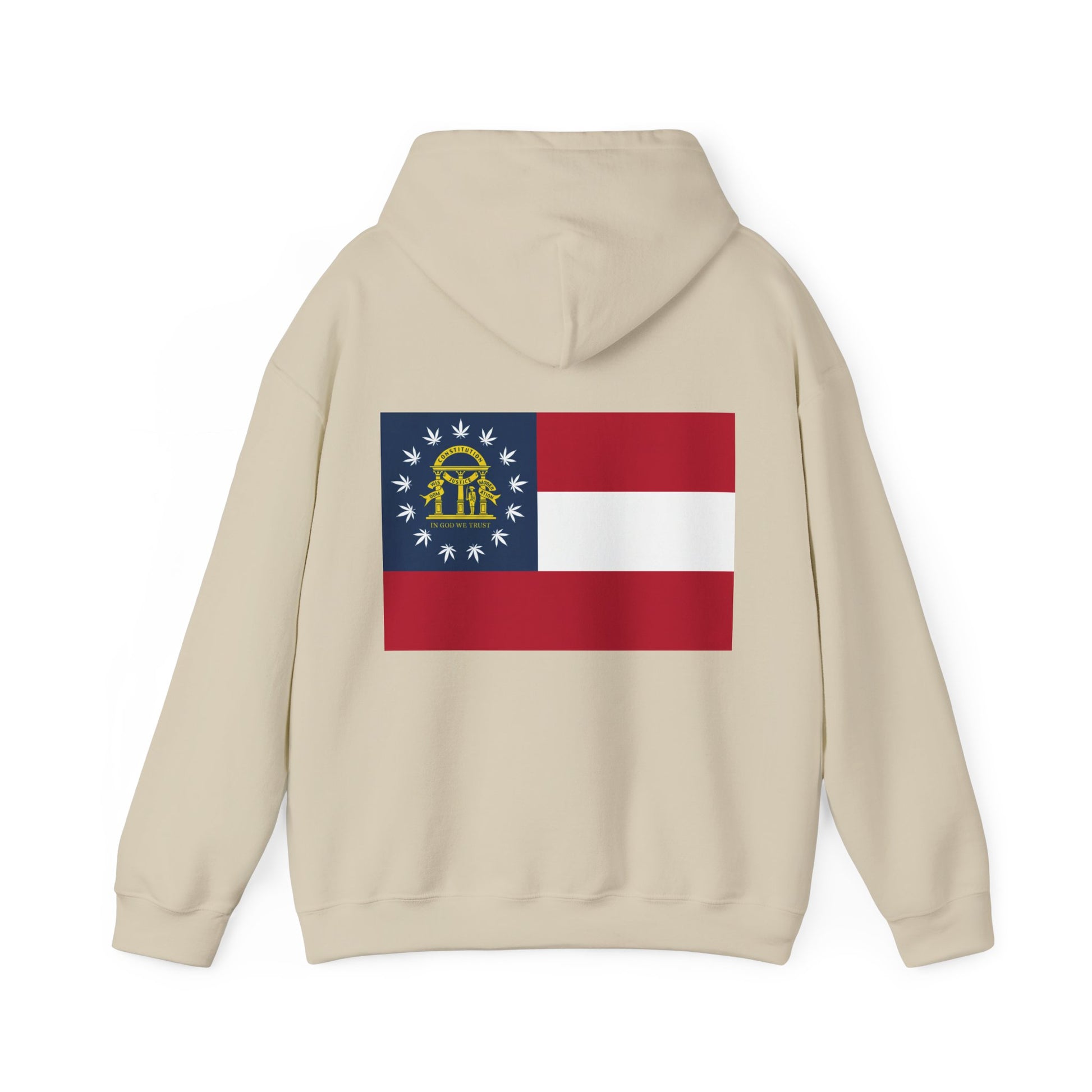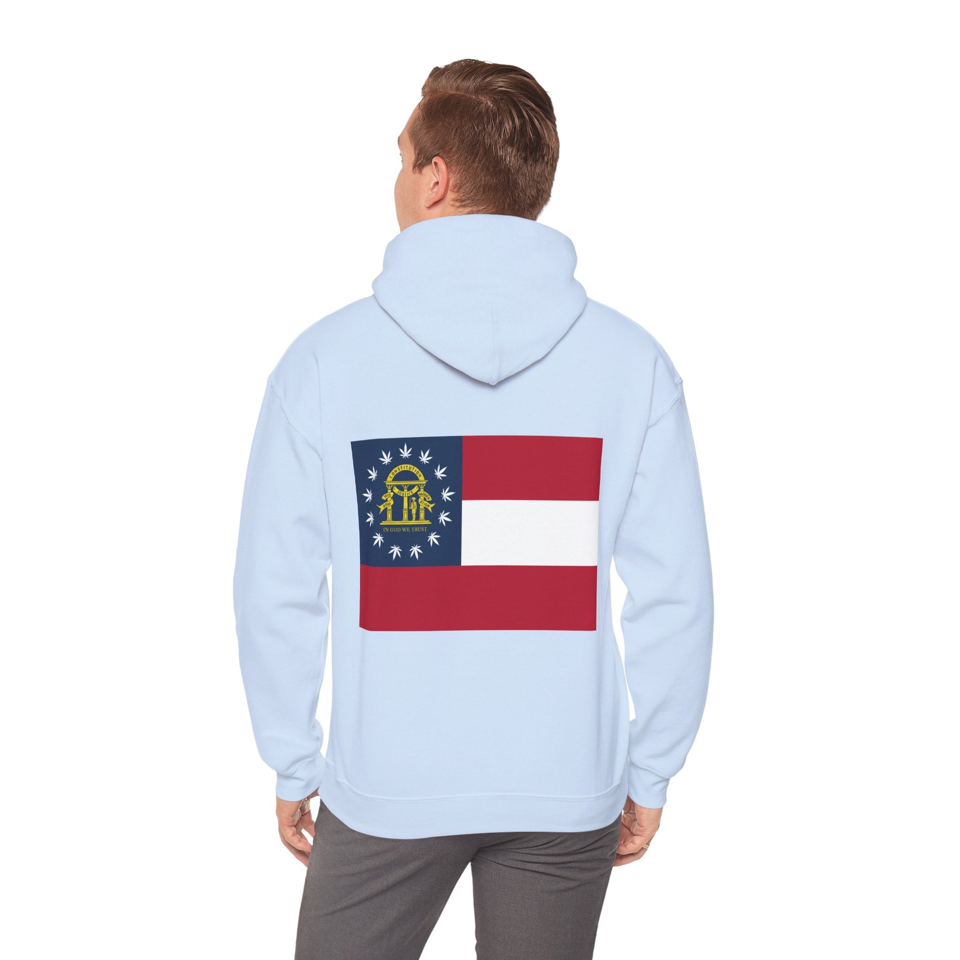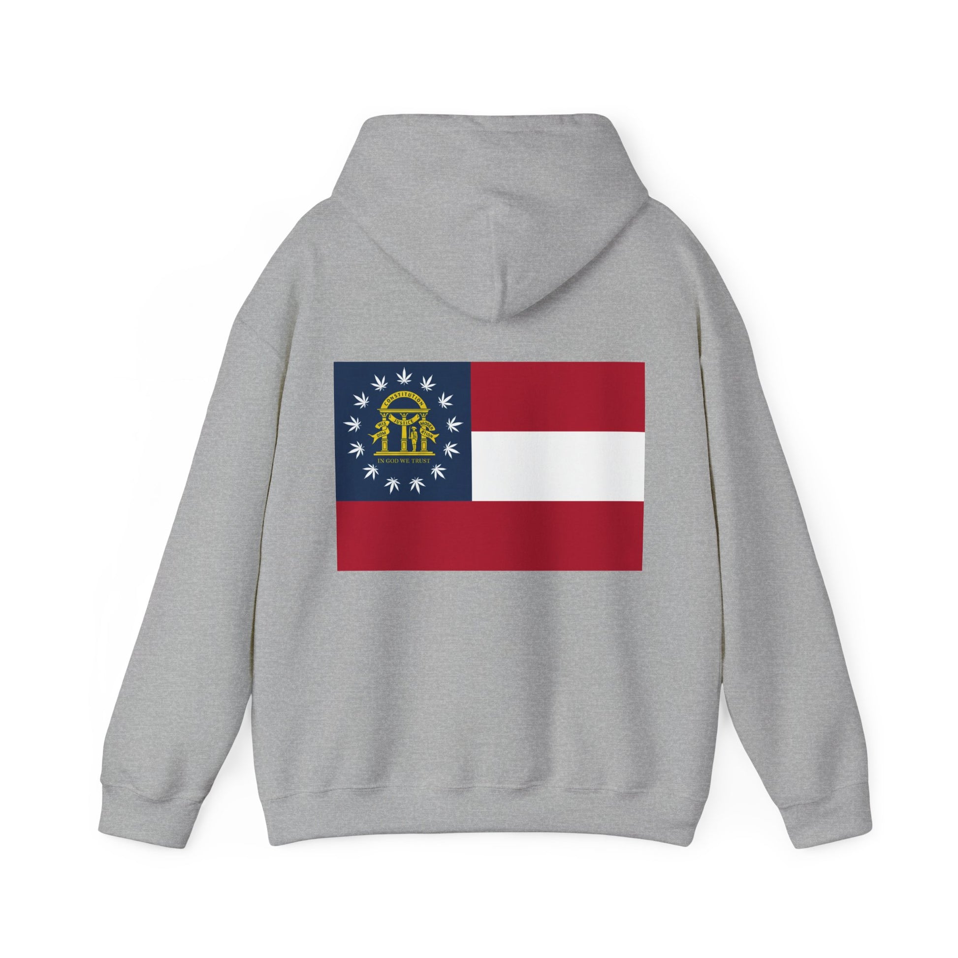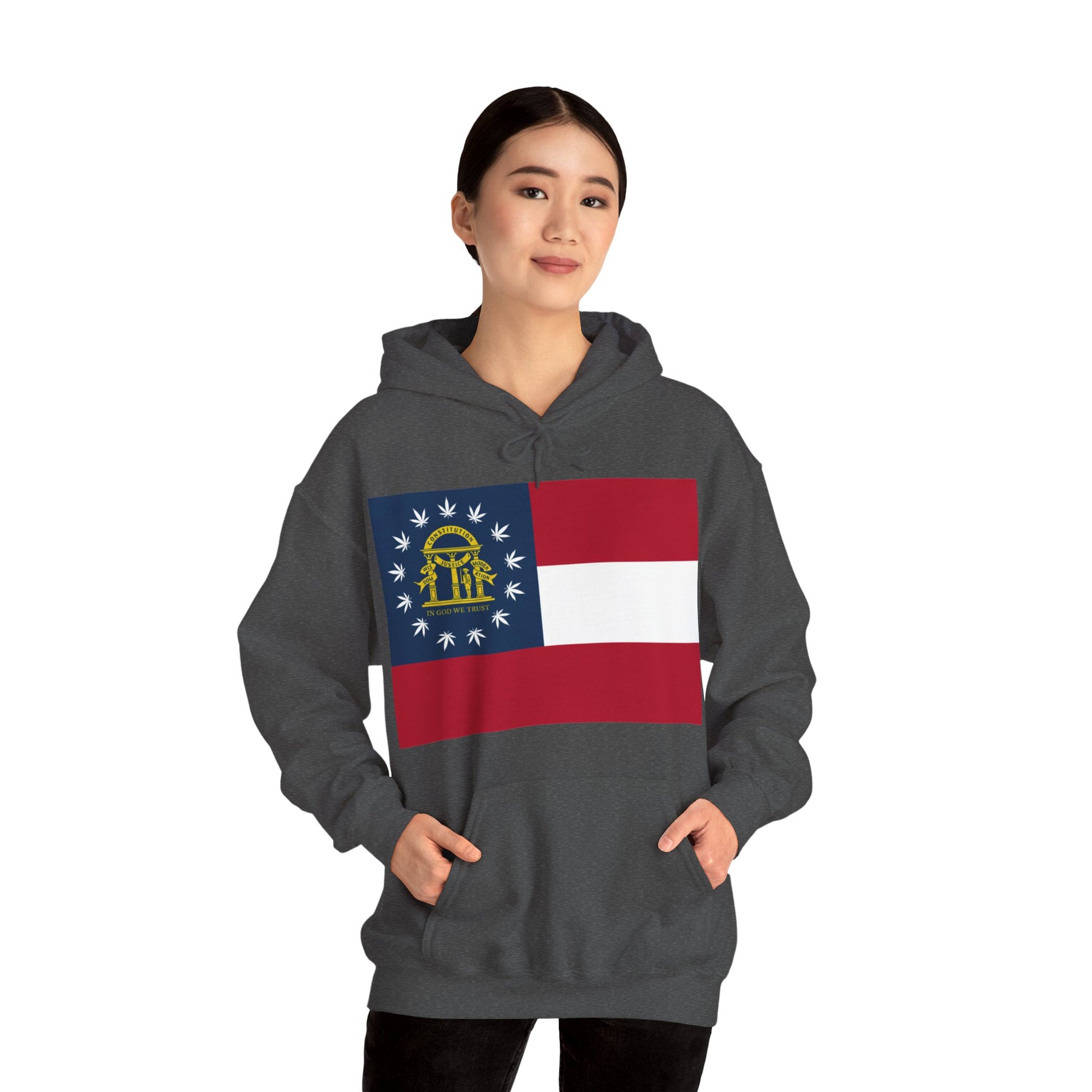 Stay warm and show off your Georgia pride with this cozy Georgia cannabis State Flag Hoodie. Perfect for festivals and makes a great gift for Georgians. Suitable for adults looking for stylish, comfortable outerwear for chilly days.