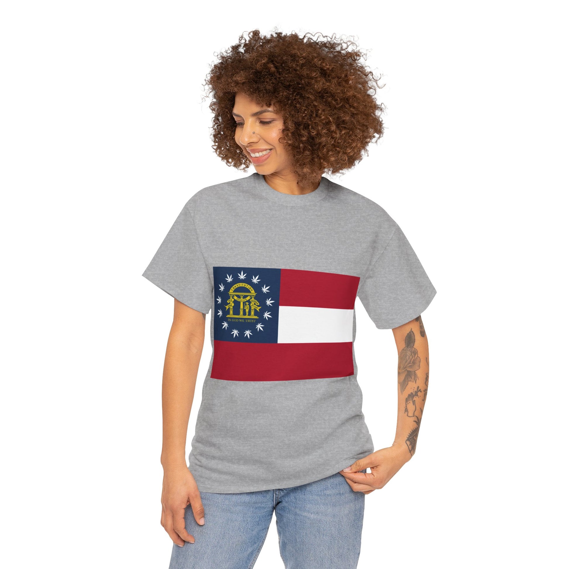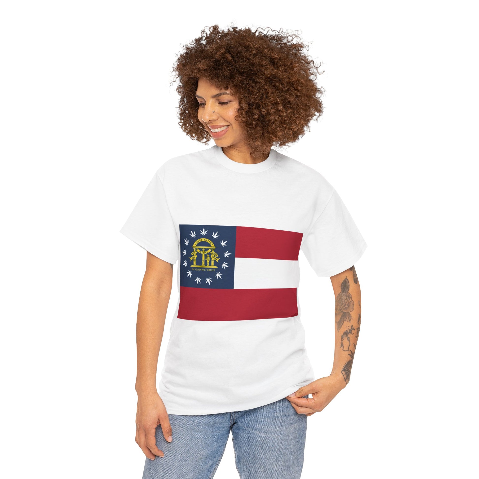 Show your state pride with this Georgia cannabis state flag Tee. Made with high-quality, smooth fabric perfect for printing, this unisex Tee is comfortable and stylish. Perfect for adults looking to add a touch of uniqueness to their wardrobe, this Tee is ideal for casual wear or as a statement piece for special occasions. Great for celebrating state holidays or showing support for cannabis legalization.