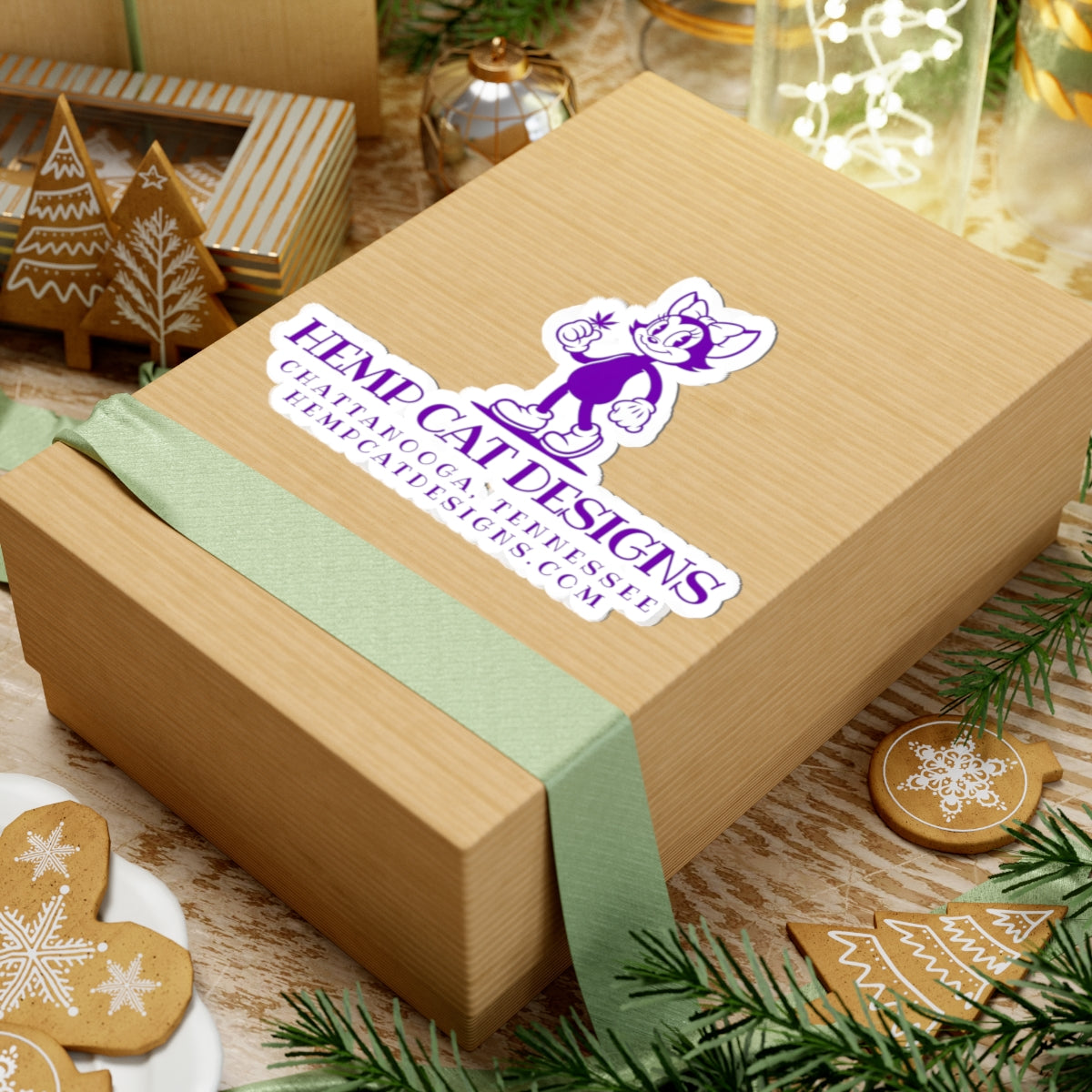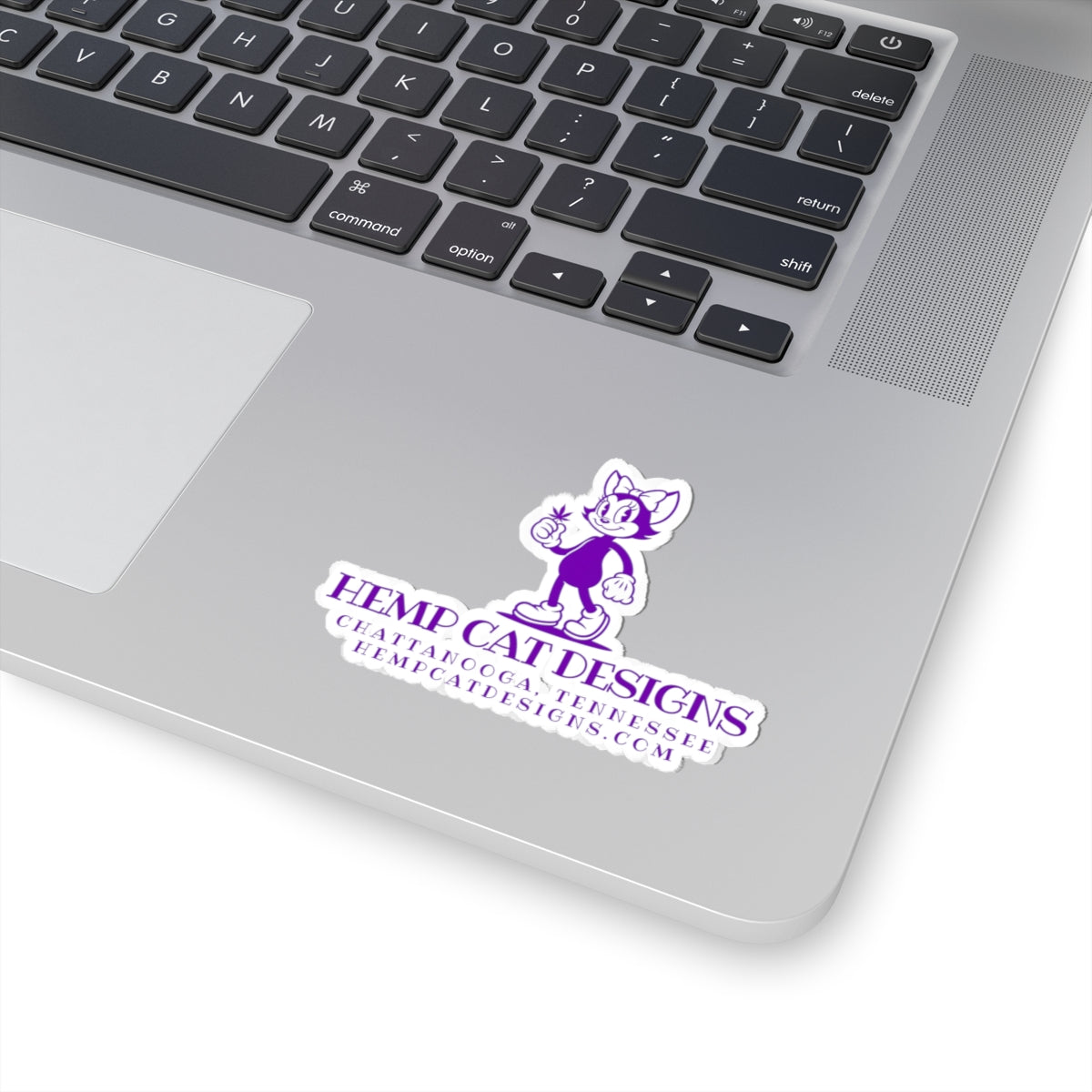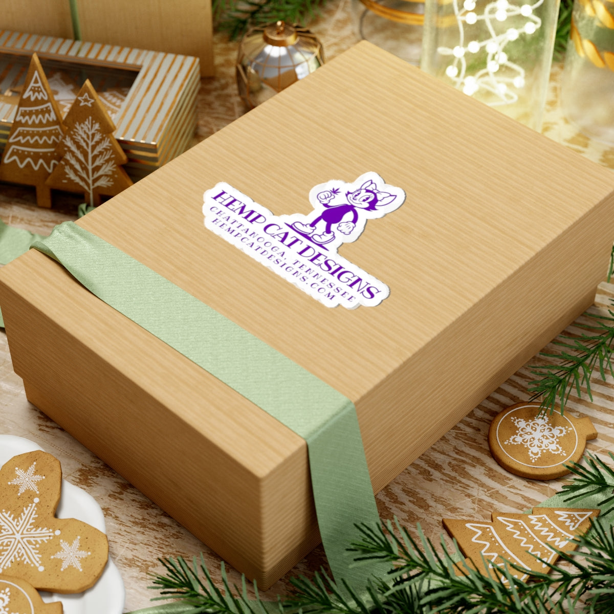 Adorable Mrs Hemp Cat holding a leaf sticker that adds a cute and whimsical touch to any smooth surface. Perfect for adults looking to decorate laptops, journals, windows, and more, especially cat lovers and nature enthusiasts. Ideal for adding charm during Earth Day, Arbor Day, or any plant-themed celebration.
