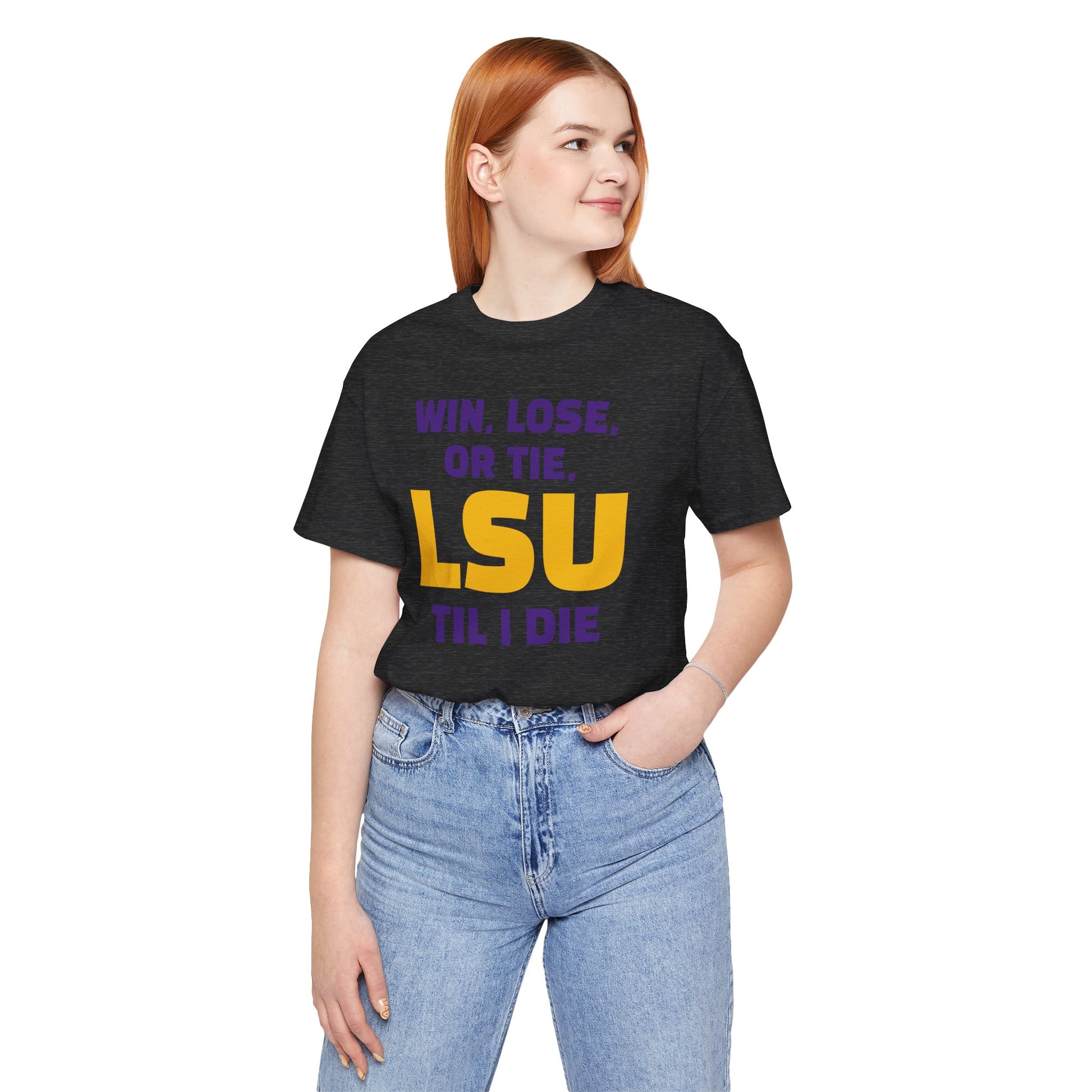 LSU Fan Tee - Win, Lose, or Tie, Unisex Jersey Short Sleeve Shirt for Game Day, College Sports, Tailgate Party, Gift for Fans, LSU Apparel