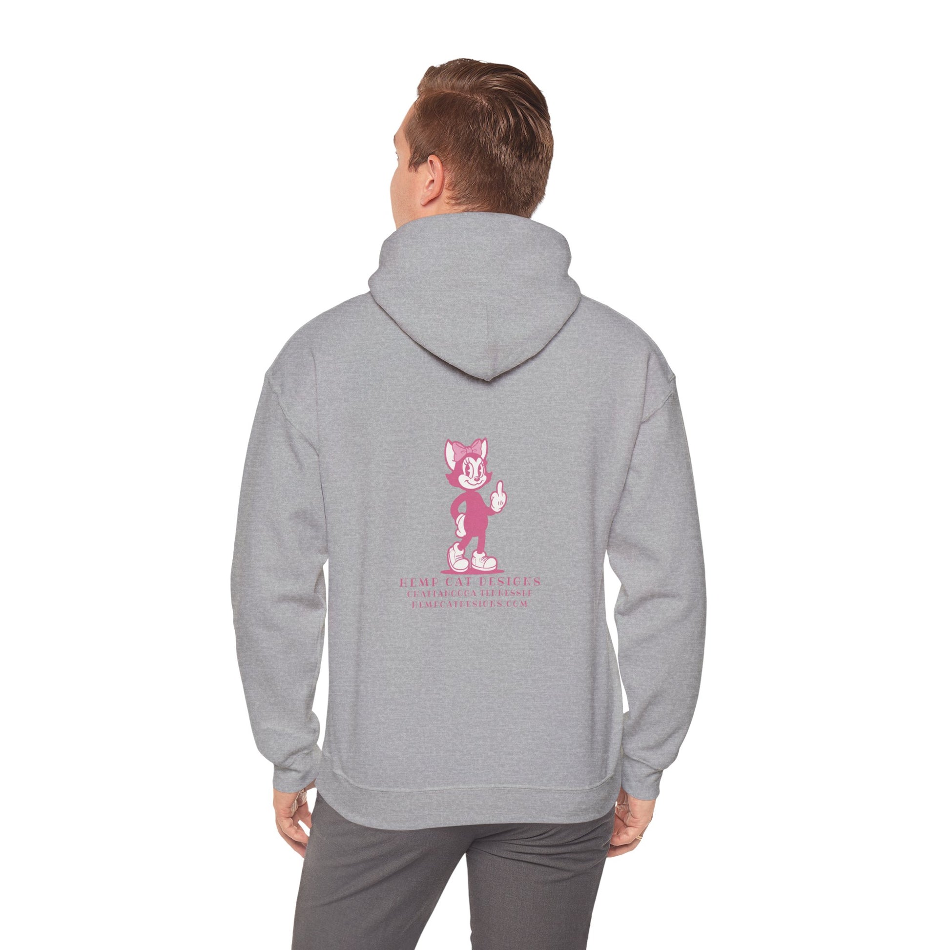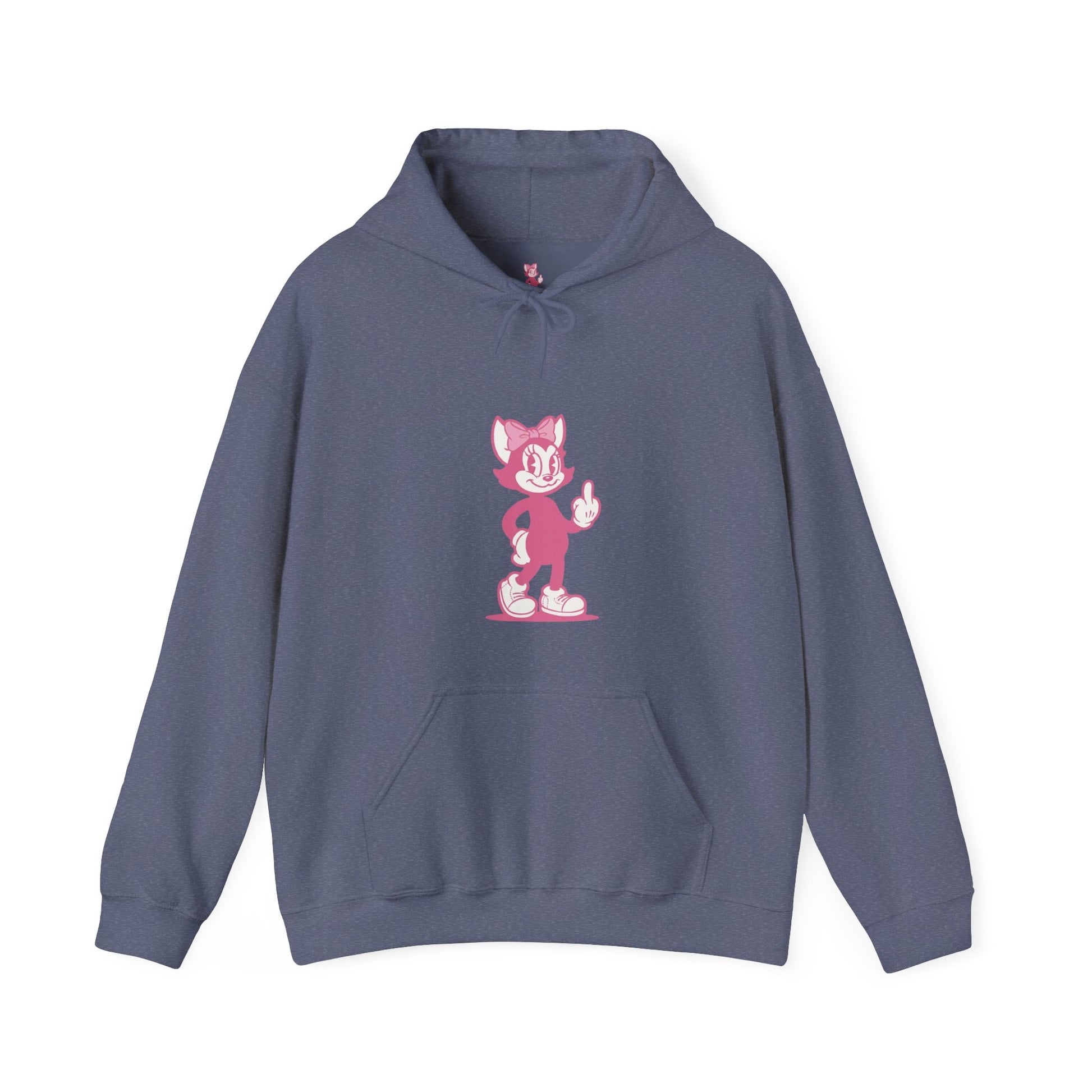 Soft, warm, and just a little bit sassy — this retro pink cartoon cat hoodie brings a playful edge to cool nights and lazy weekends. The cheeky middle-finger cat graphic sits bold and unapologetic across the chest, sending a wink to anyone who appreciates deadpan humor. Wear it to coffee runs, late-night drives, or when you need a cozy armor for a rough day. The roomy kangaroo pocket and double-lined hood make it easy to curl up in; the vintage-inspired pink tone and whimsical illustration add a nostalgic, offbeat style that fits right into a quirky wardrobe. It's grown-up comfort with a mischievous heart — for evenings at the record store, cabin hangouts, or those flip-everything-off mornings where you still want to look cute.