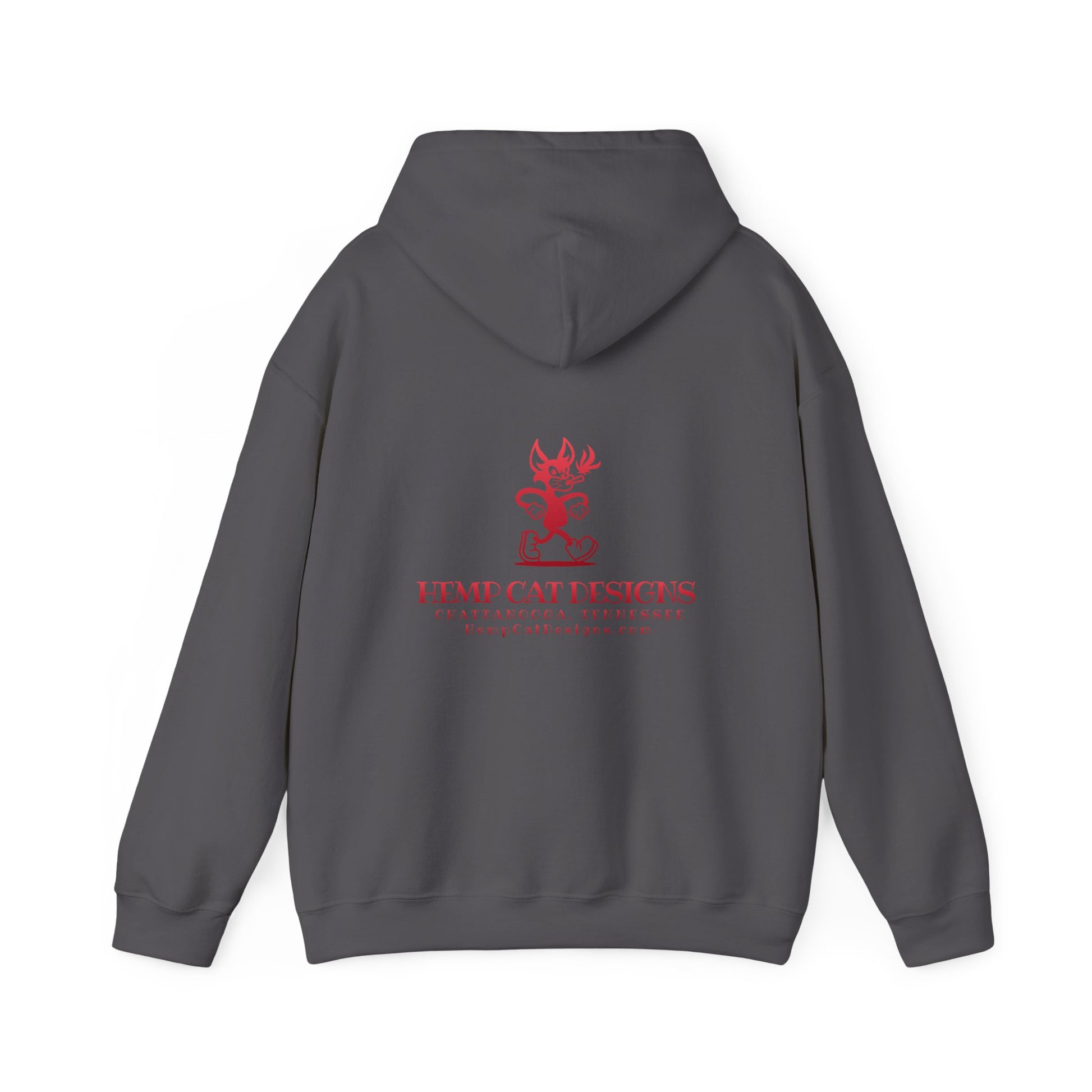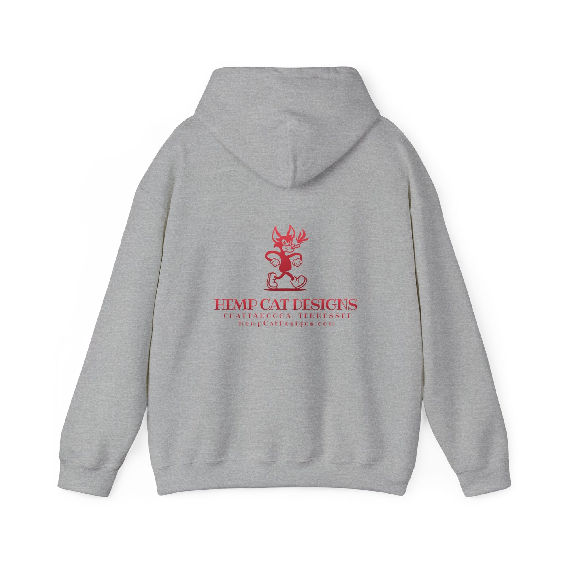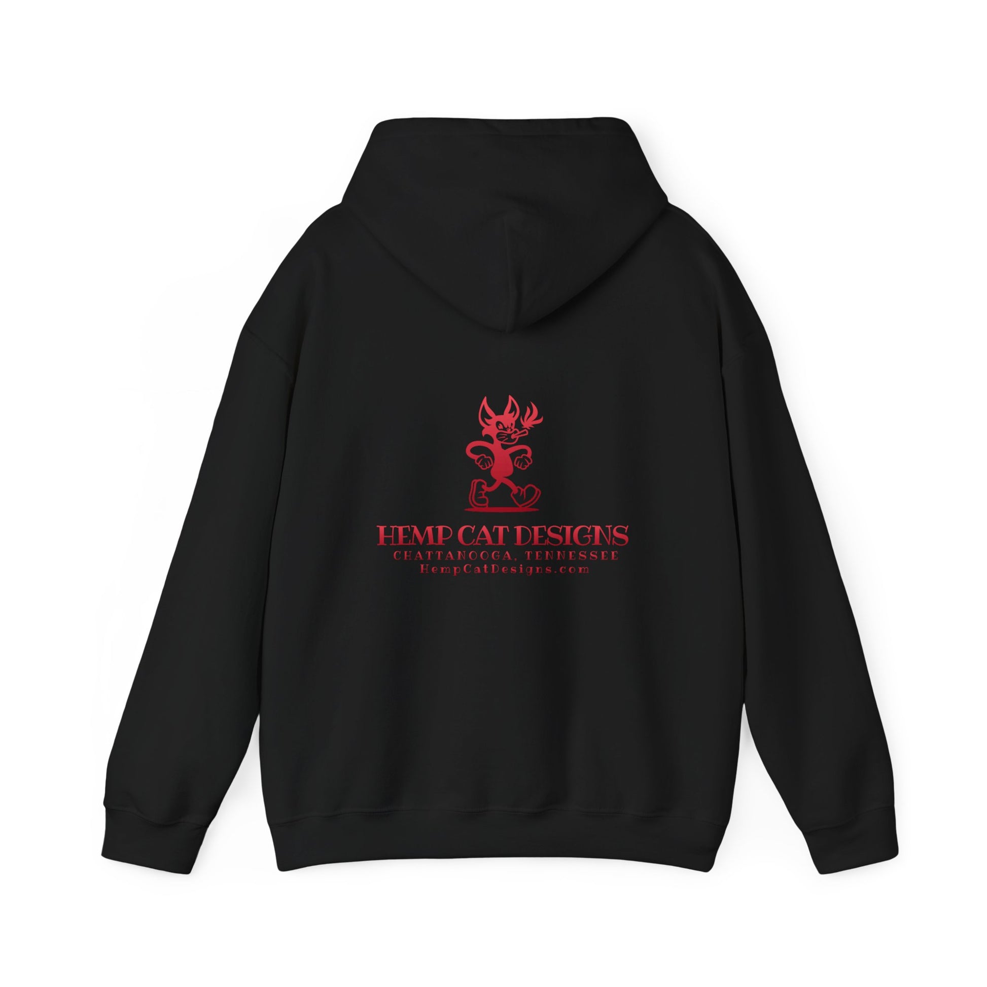 A high-quality hoodie featuring Mr Hemp Cat struttin his stuff, perfect for those looking for a cozy and stylish addition to their wardrobe. This hoodie is ideal for adults and is made from a blend of 50% cotton and 50% polyester, offering warmth and softness on chilly days. The spacious pockets, drawstring hood, and classic fit make it comfortable to wear.
