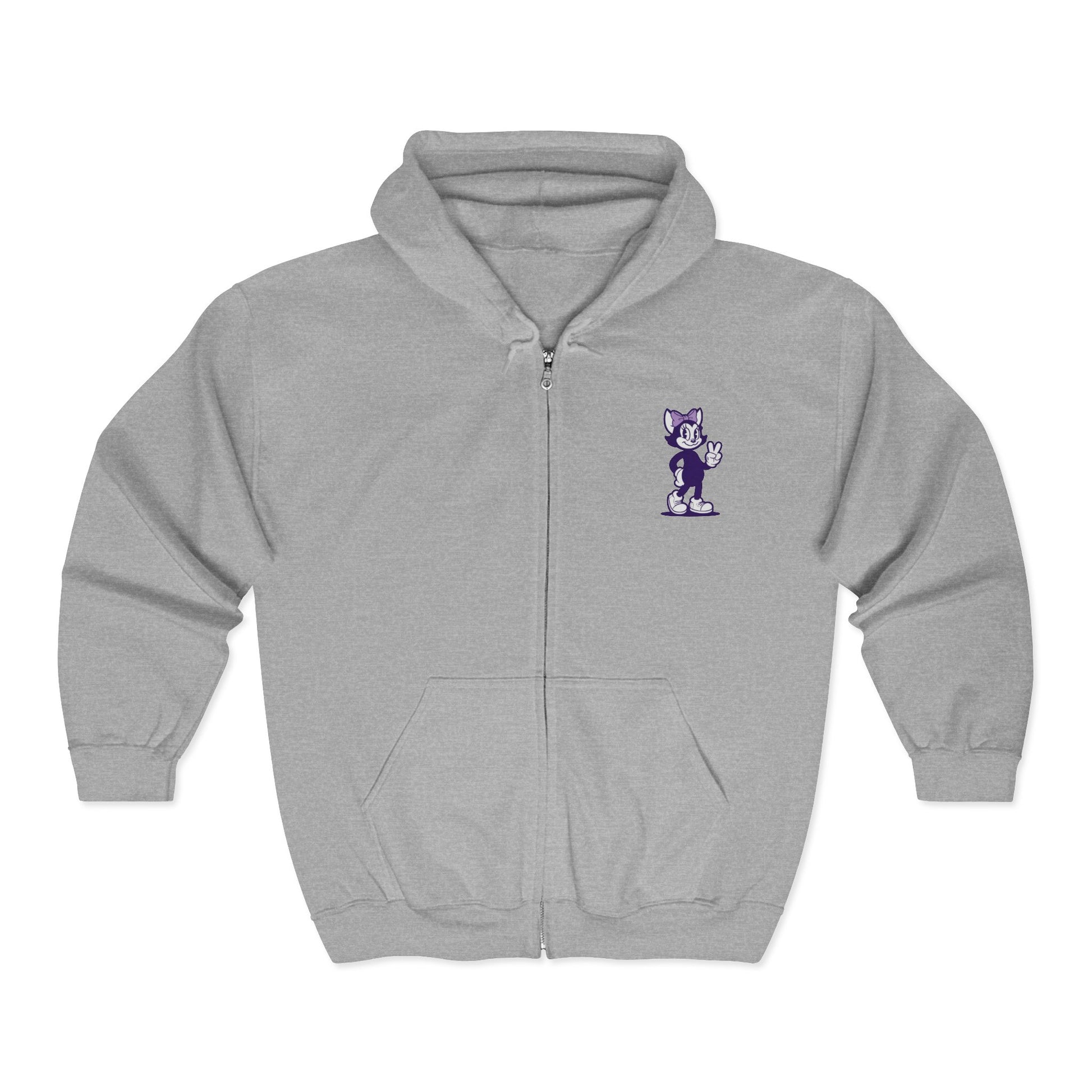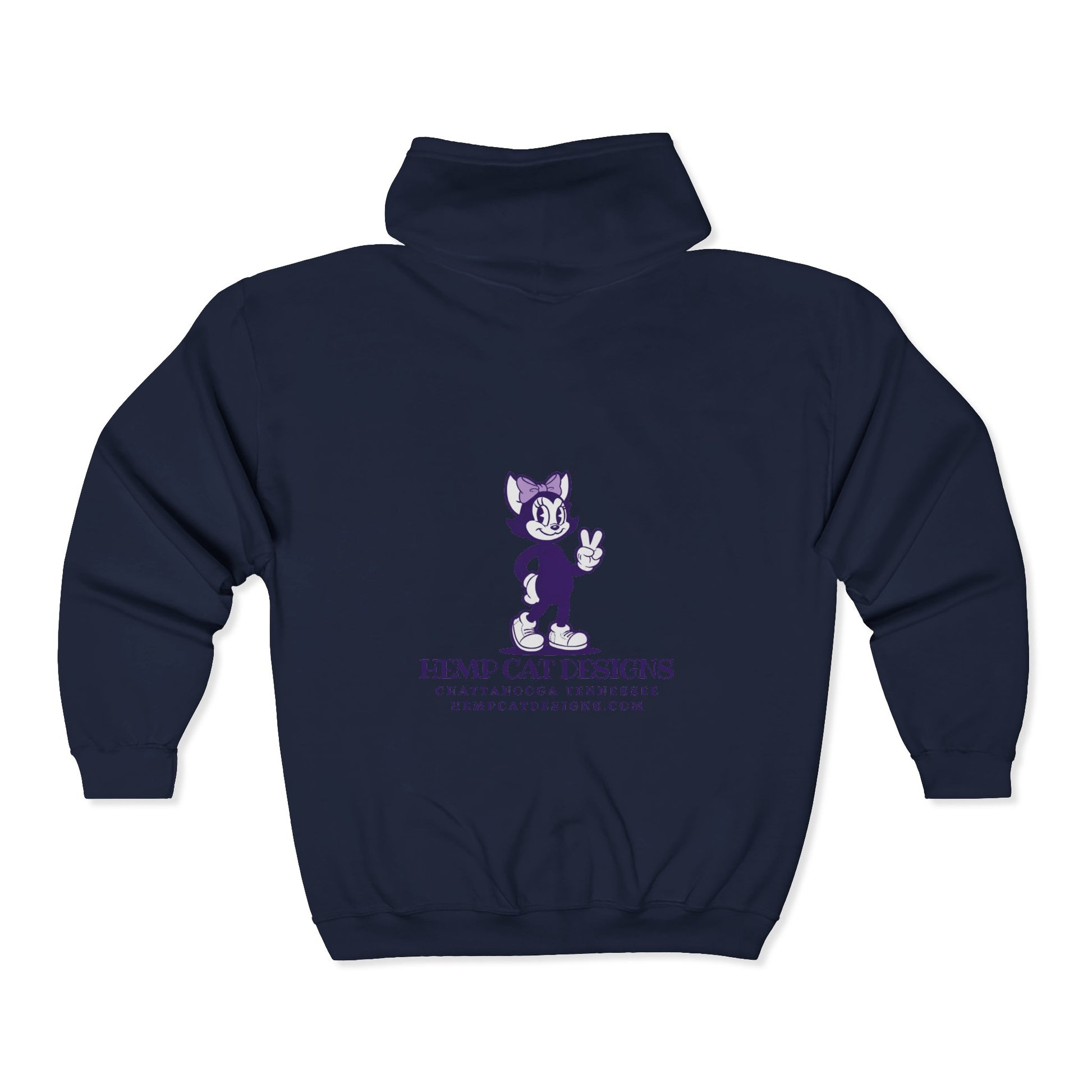 Mrs Hemp Cat Throwin' a Peace Sign Retro Full‑Zip Hoodie