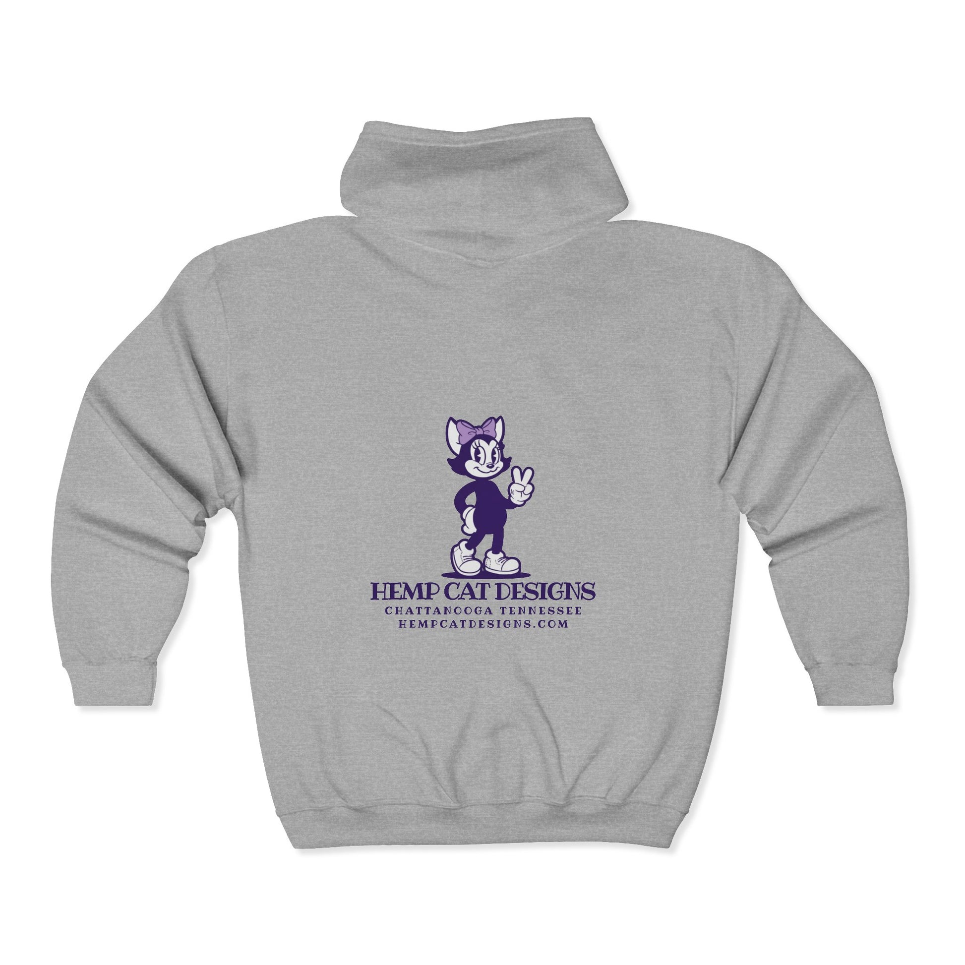 Channel 1970s skate‑park energy with a warm, worn-in vibe. This full-zip hoodie wears like a memory: thick but soft, with a retro cartoon of Mrs. Hemp flashing a peace sign that feels honest and a little mischievous. Zip it up on the walk to the record store, layer it under a trucker jacket for evening bonfires, or throw it on after a long session in the studio. The roomy pockets hold your lighter, keys, and sketchbook. A solid metal zipper and durable knit mean this piece will be part of your rotation for seasons to come. Subtle embroidered options at the chest and carefully placed wrist prints give it crafted detail without shouting for attention. For those who live for analog textures, faded posters, and slow playlists, this hoodie settles right in.