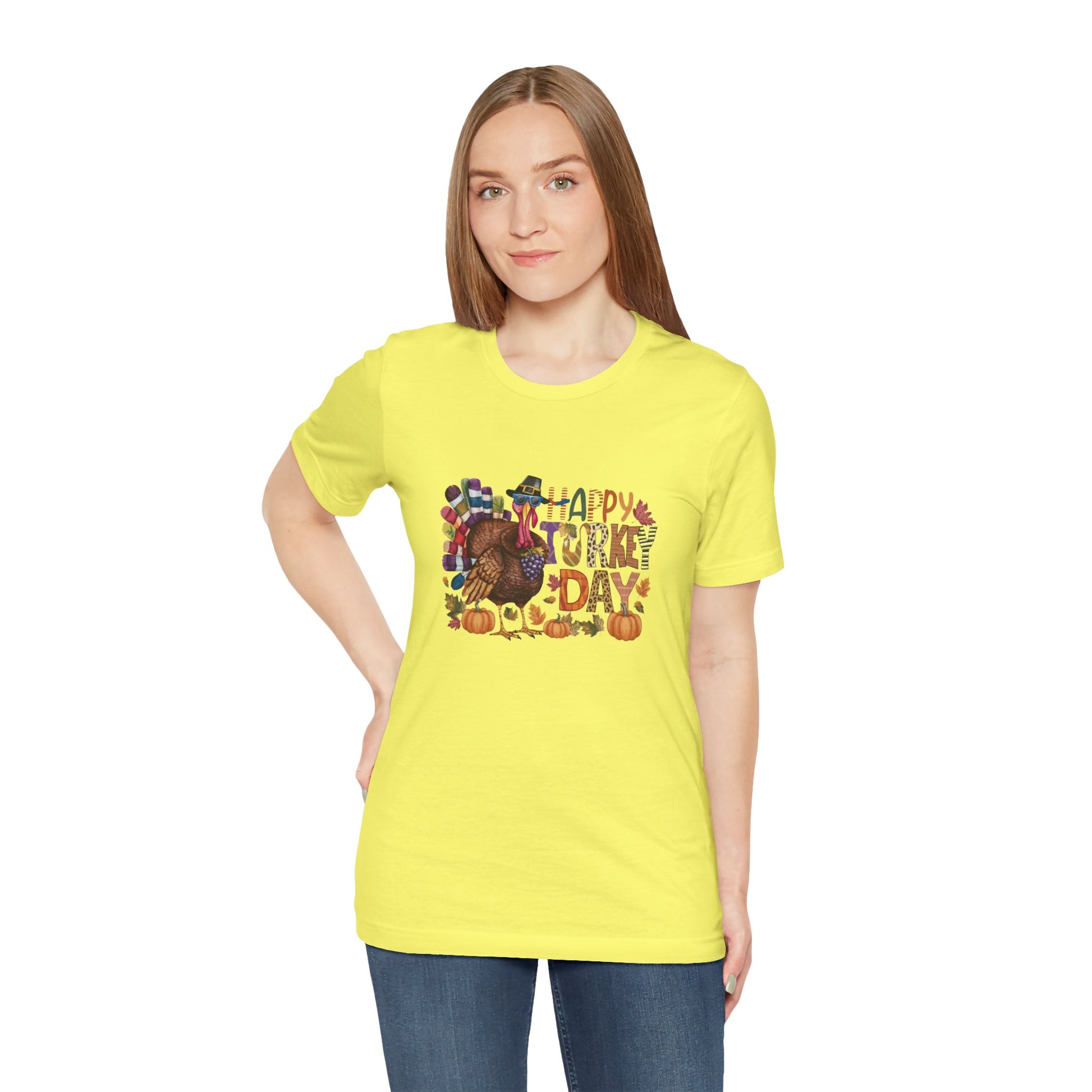Celebrate the joy of Thanksgiving with this vibrant Unisex Jersey Short Sleeve Tee. Designed to bring warmth and cheer, it features a colorful turkey motif that embodies the spirit of the holiday. This tee is perfect for family gatherings, casual outings, or cozy evenings spent with loved ones. Its versatile style makes it an ideal choice for everyone—from kids to adults—who want to showcase their festive spirit. Whether you're hosting a feast or simply enjoying a day off, this shirt will add a joyful touch to your wardrobe. A wonderful gift for Thanksgiving, it’s also suitable for themed parties, autumn celebrations, and any occasion that calls for a little fun and flair.
