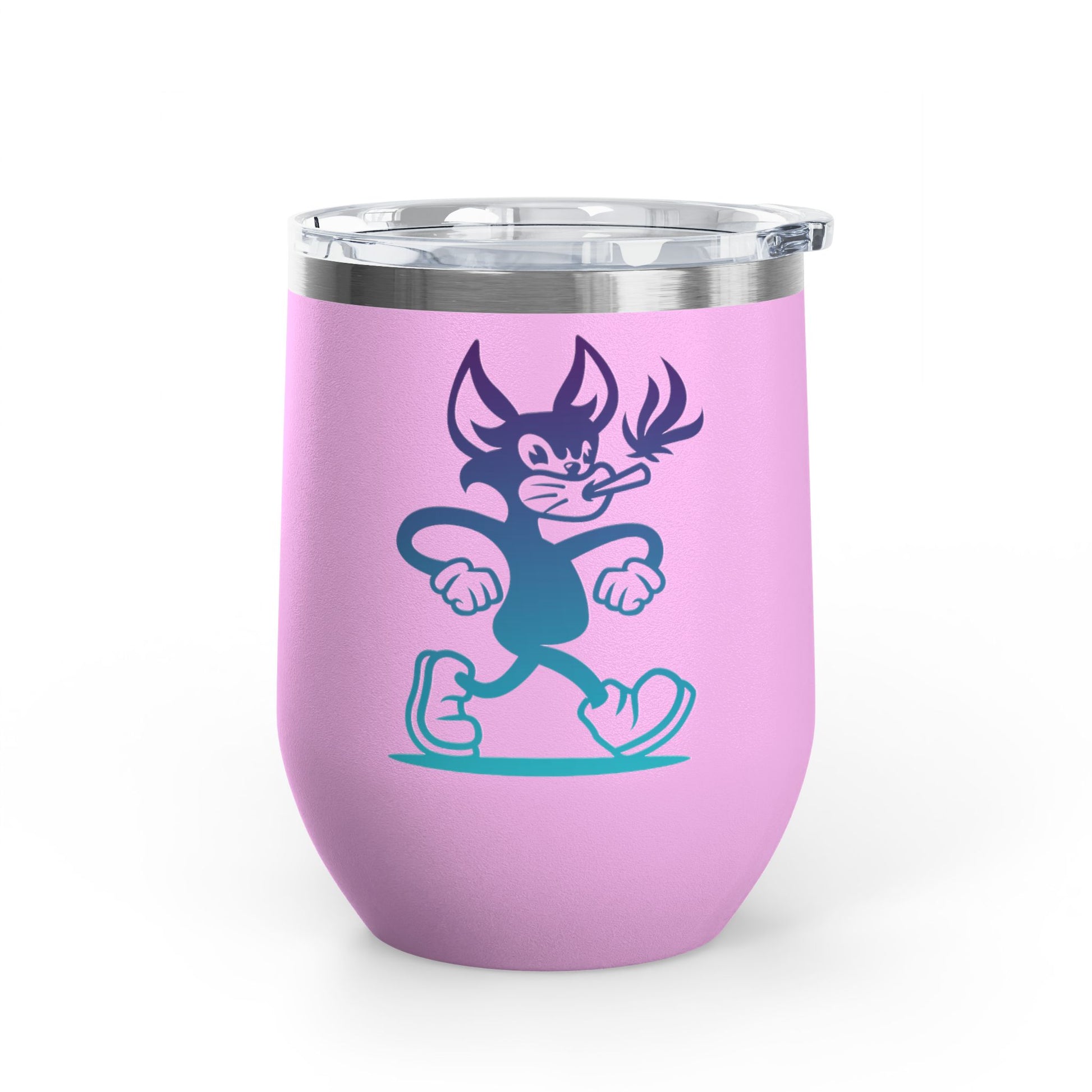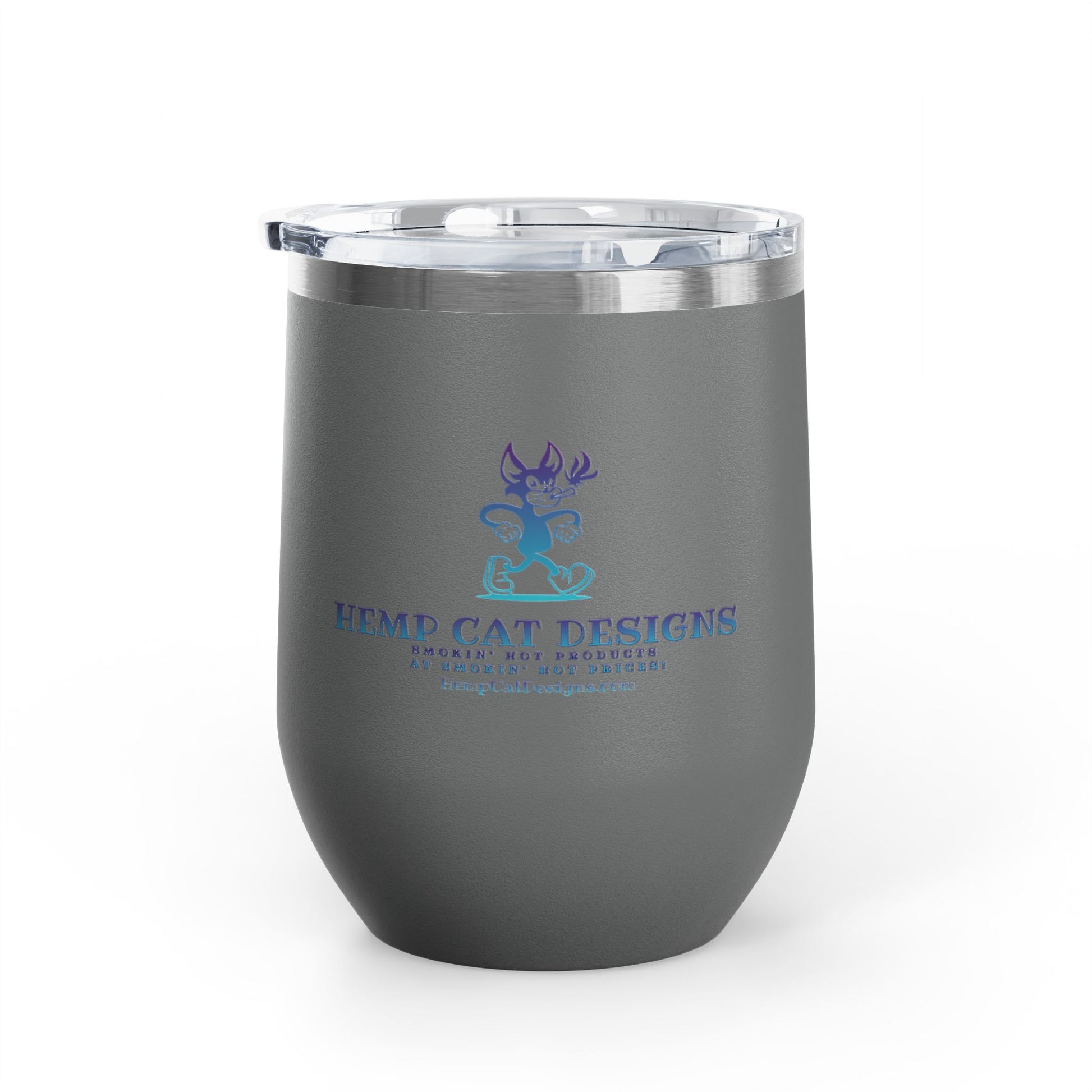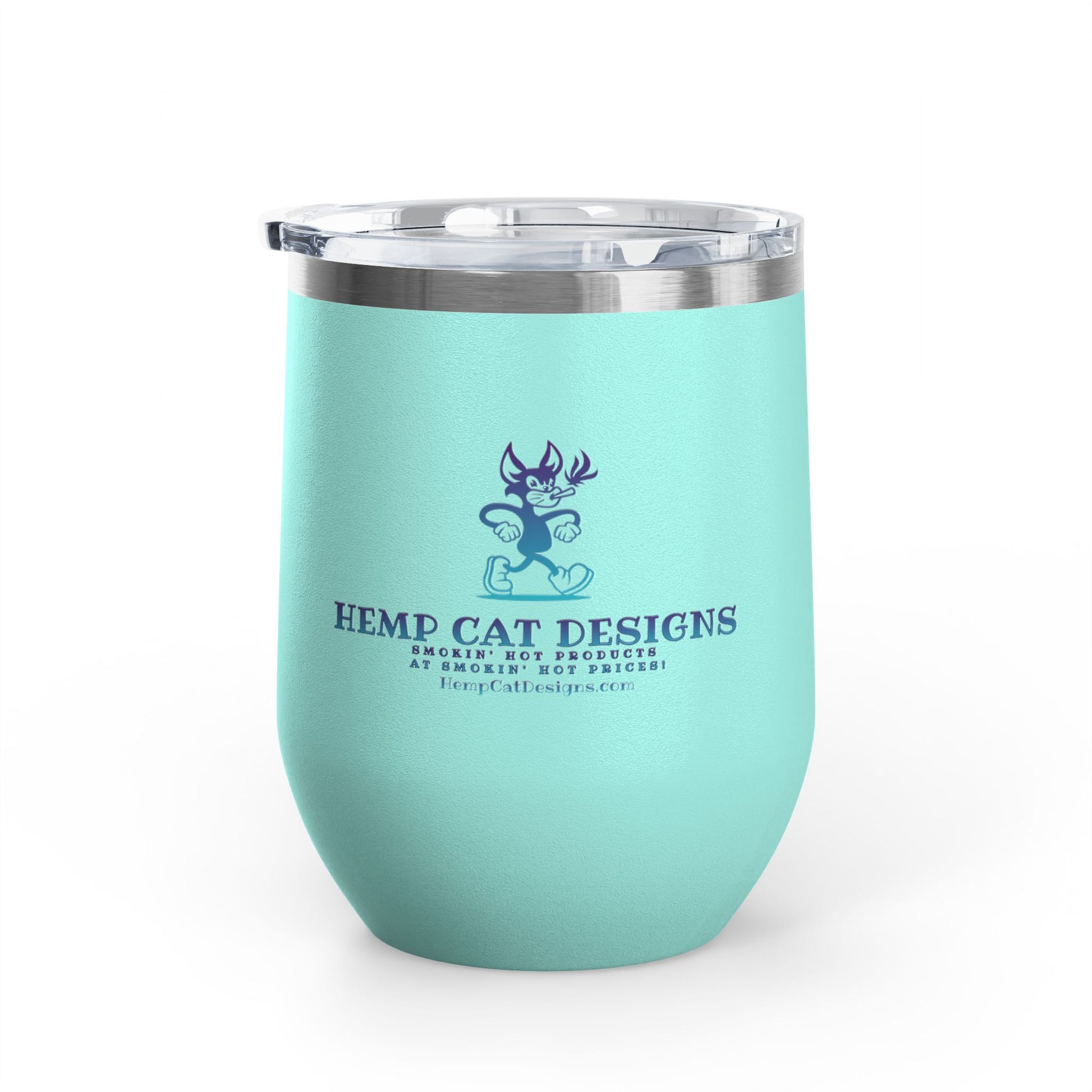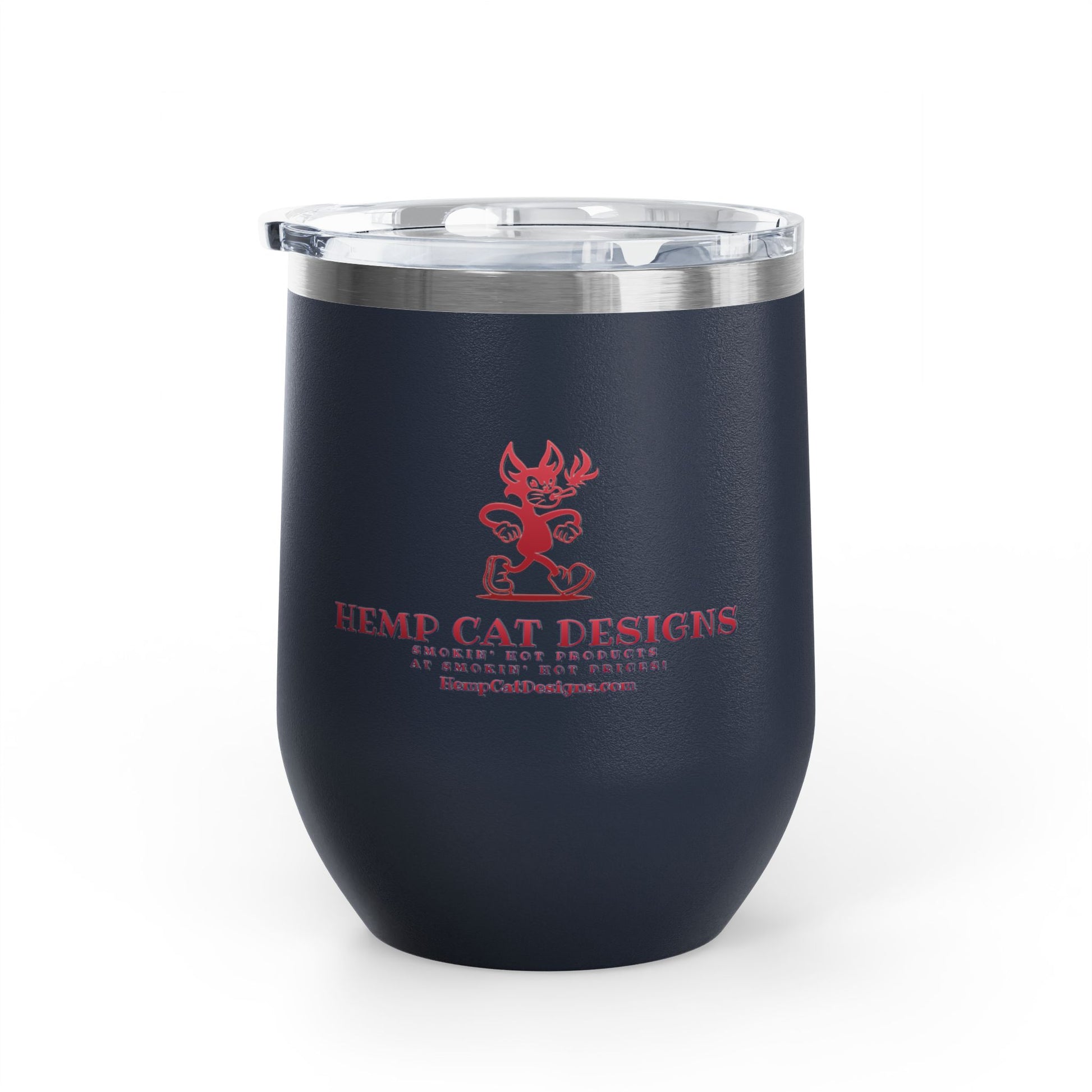 A stylish 12oz wine tumbler featuring Mr Hemp Cat struttin' his stuff, perfect for keeping your drinks hot or cold for hours. Ideal for cat lovers looking to enjoy their favorite beverages in a fun and unique way. Great for gifting on birthdays, holidays, or as a special treat for yourself.